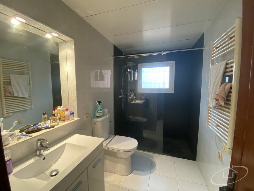 Au premier étage, il y a 2 chambres doubles, une avec accès à une grande terrasse, une chambre simple et une salle de bain.