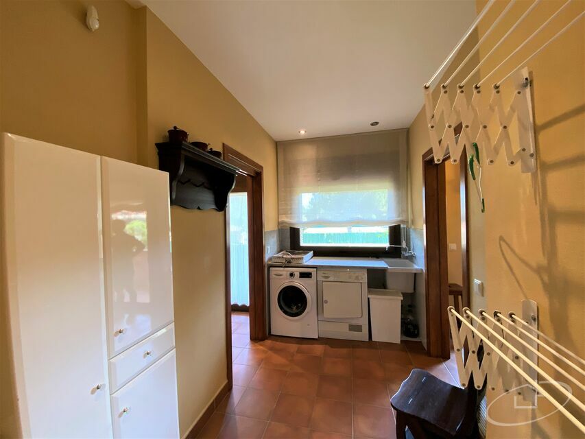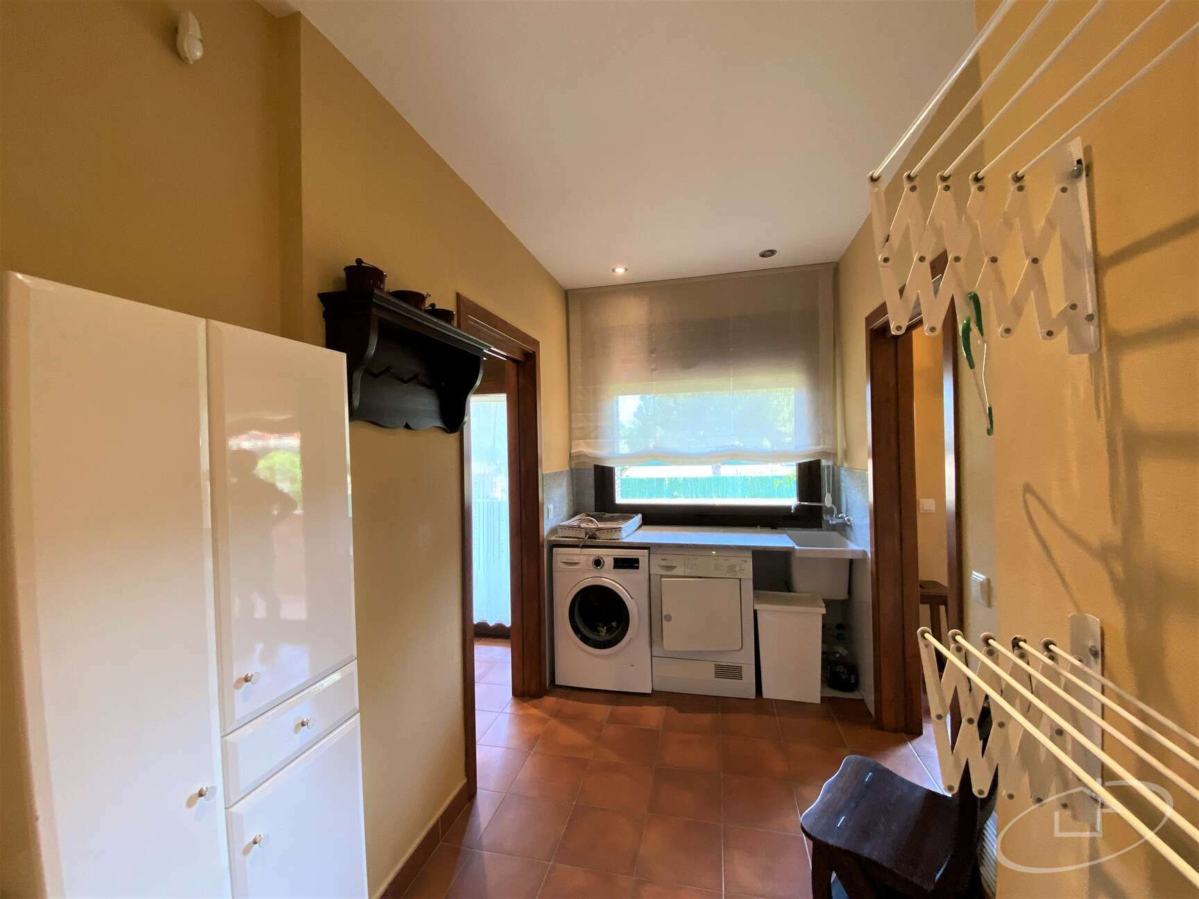 6 habitacions, 3 banys, rebedor, cuina, sala d'estar, menjador, armari vestidor, rentador, porxo, garatge adossat amb 2 places de pàrquing, sala soterrani, golfes, sala de màquines, armaris encastats a les habitacions i als passadissos.